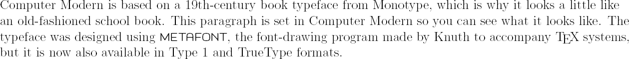 If you are reading this in a web browser, the above paragraph is only a low-resolution copy because browsers don't usually have the Computer Modern font available. All the rest of this document is set in your current browser serif font, with your current browser sans-serif font for some of the headings and your current browser monospace font for the fixed-width type.